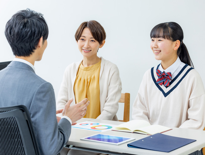 お子様の偏差値、性格、将来の進路についての夢や希望などをヒアリングした上で、最適な学校をご紹介致します。